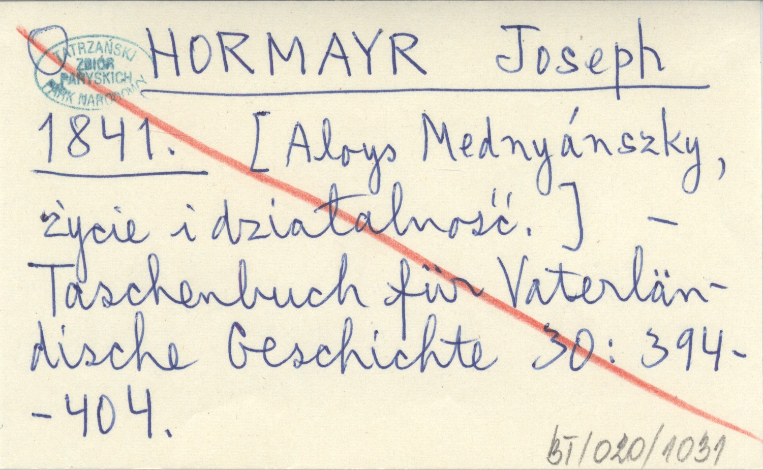 HORMAYR Joseph 1841 [Aloys Mednyánszky, życie i działalność].