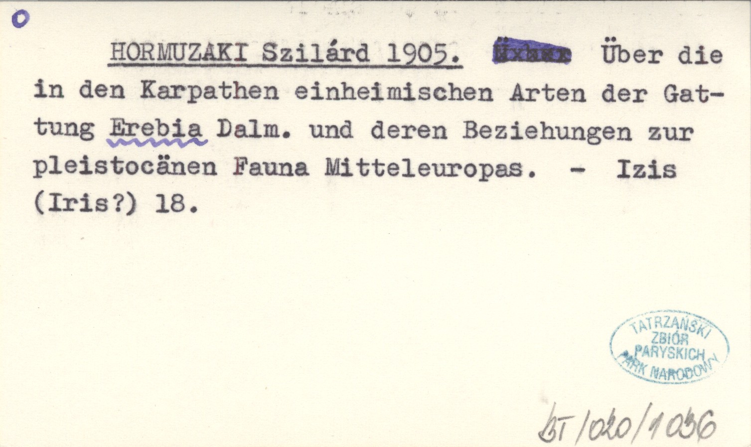 HORMUZAKI Szilárd 1905 Über die in den Karpathen einheimischen Arten der Gattung Erebia Dalm. und deren Beziehungen zur pleistocänen Fauna Mitteleuropas.