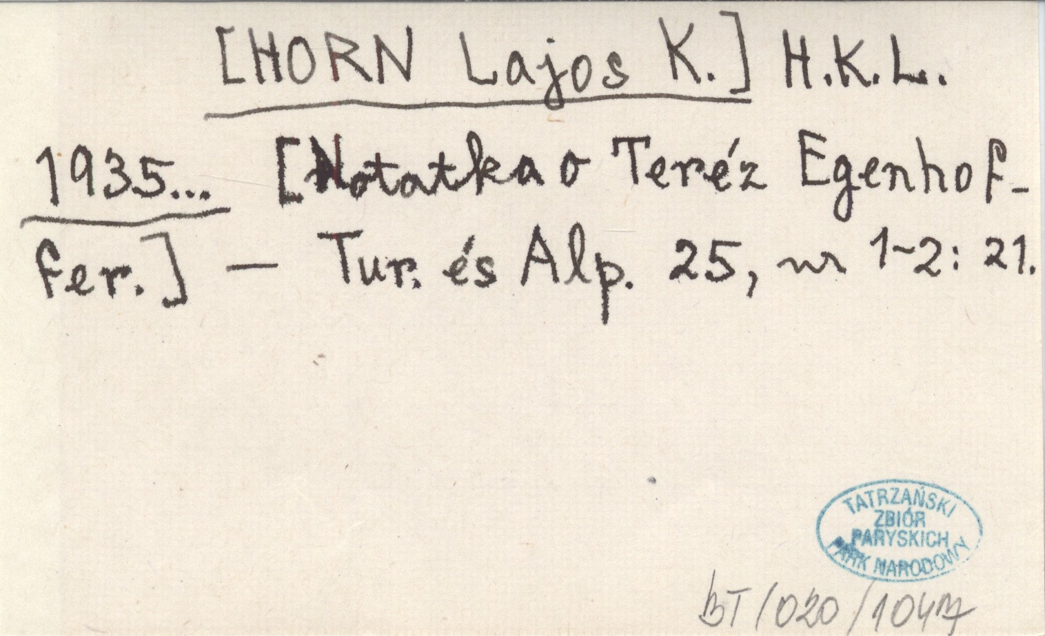H. K. L. [HORN Lajos K.] 1935... [Notatka o Teréz Egenfoffer].
