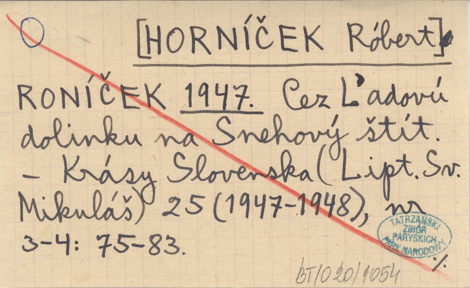 RONÍÈEK [HORNÍÈEK Róbert] 1947 Cez ¥adovú dolinku na Snehový ¹tít.