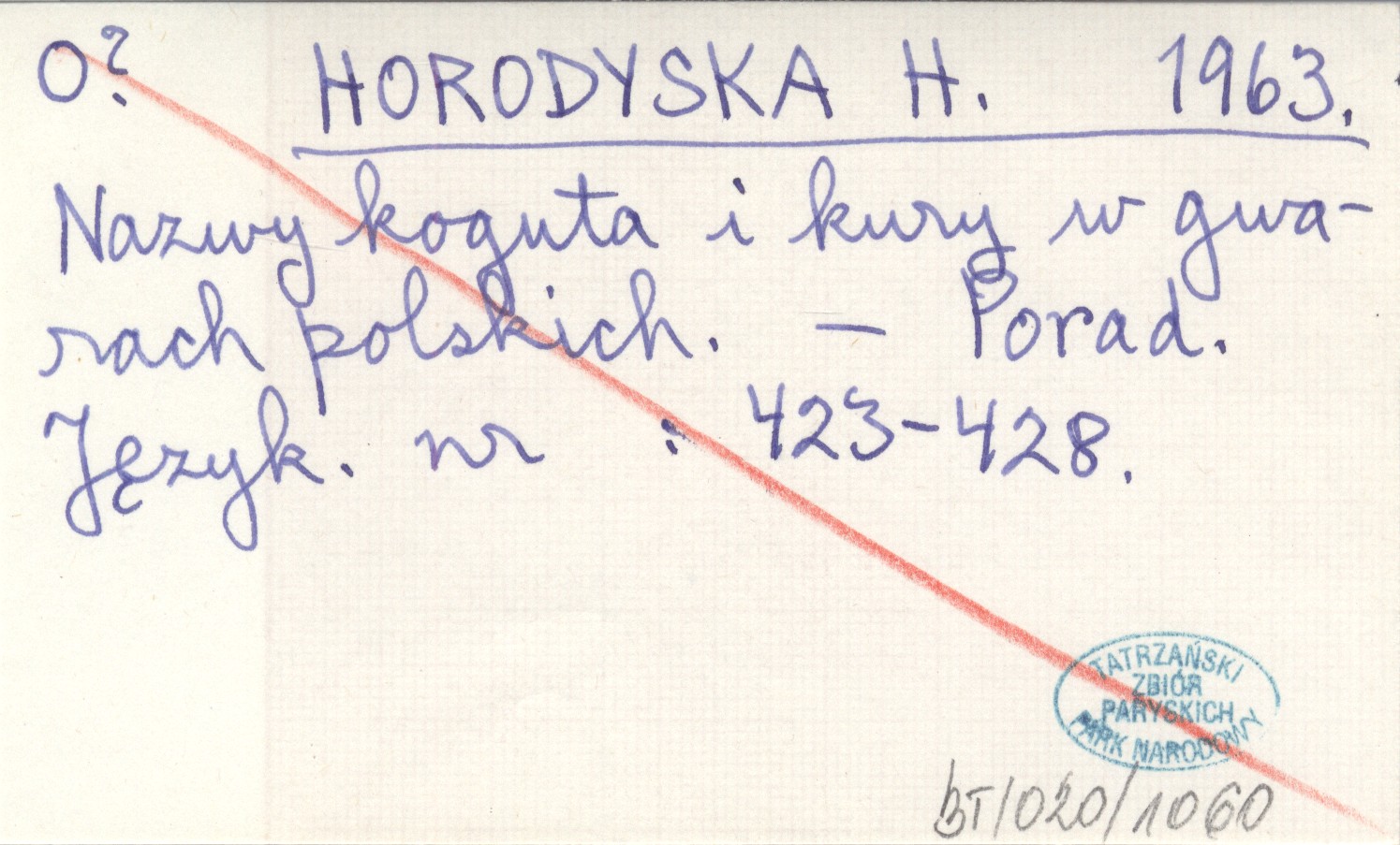 HORODYSKA H. 1963 Nazwy koguta i kury w gwarach polskich.