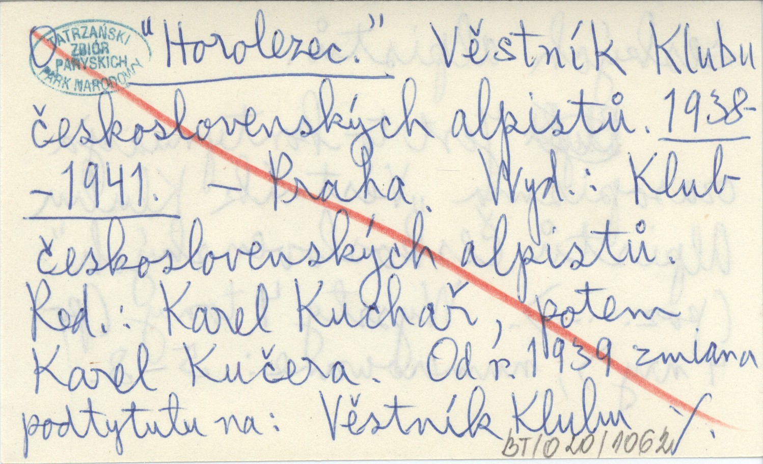 Klubu československých alpinistů, , Jest to kontynuacja czasopisma "Věstník Klubu Alpinistů Československých (poz. ...). Wyszły t tomy (po 4 nr), numerowane: 5-8. Od r. 1939 zmiana podtytułu na: Věstník Klubu českých alpinistů.