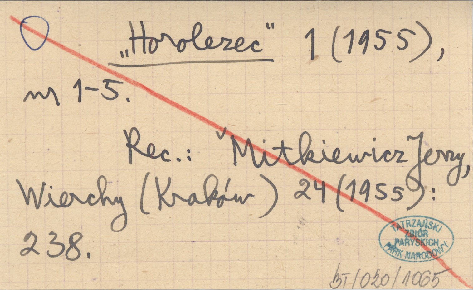 REC: Mitkiewicz Jerzy, Wierchy (Kraków) 24 (1955): 238.