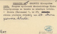 HOROWITZ Maryan ORŁOWICZ, Mieczysław. ; 1910 Program wycieczek Akademickiego Klubu Turystycznego we Lwowie na miesi±ce letnie.