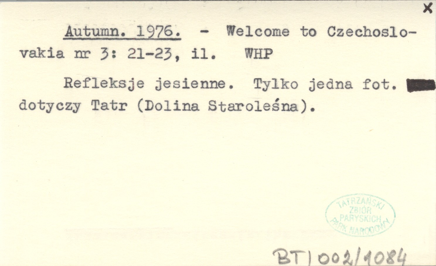 Welcome to Czechoslovakia, Nr 3: 21-23, il. Refleksje jesienne. Tylko jedna fot. dotyczy Tatr (Dolina Staroleśna).