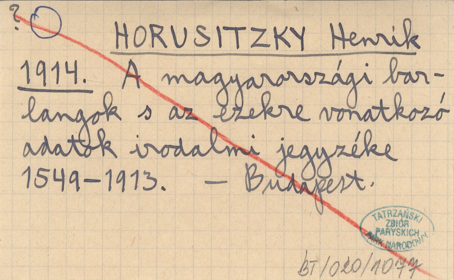 HORUSITZKY Henrik 1914 A magyarországi barlangok s az ezekre vonatkozó adatok irodalmi jegyzéke 1549-1913.