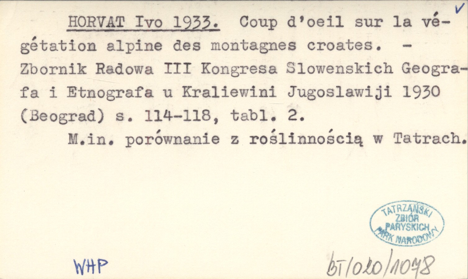 HORVAT Ivo 1933 Coup d'oeil sur la végétation alpine des montagnes croates.