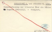 HORUSITZKÝ H. SIEGMETH, K. ; 1914 Zusammenfassung der Literatur über die Höhlen Ungarns 1549-1913.