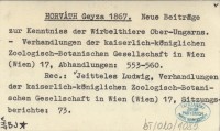 HORVÁTH Geyza 1867 Neue Beiträge zur Kenntniss der Wirbelthiere Ober-Ungarns.