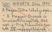 HORVÁTH Boldizsár 1877 a Új-Tátrafüredhez.