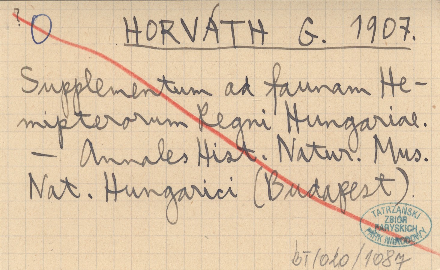 HORVÁTH G. 1907 Supplementum ad faunam Hemipterorum Regni Hungariae.