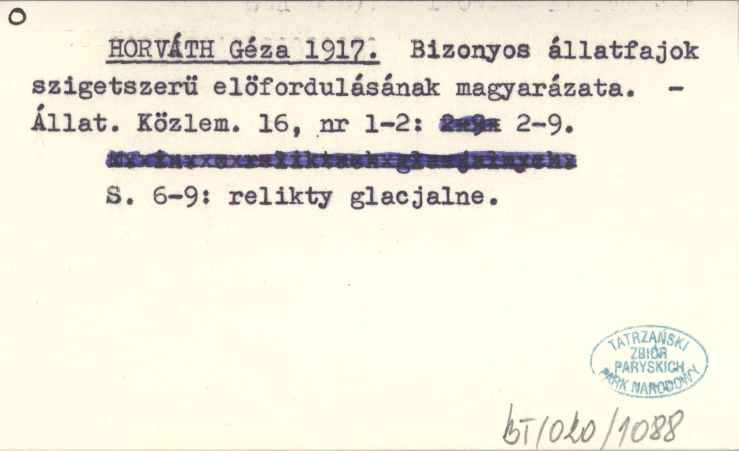 Állat. Közlem., 16, nr 1-2: 2-9. S. 6-9: relikty glacjalne.