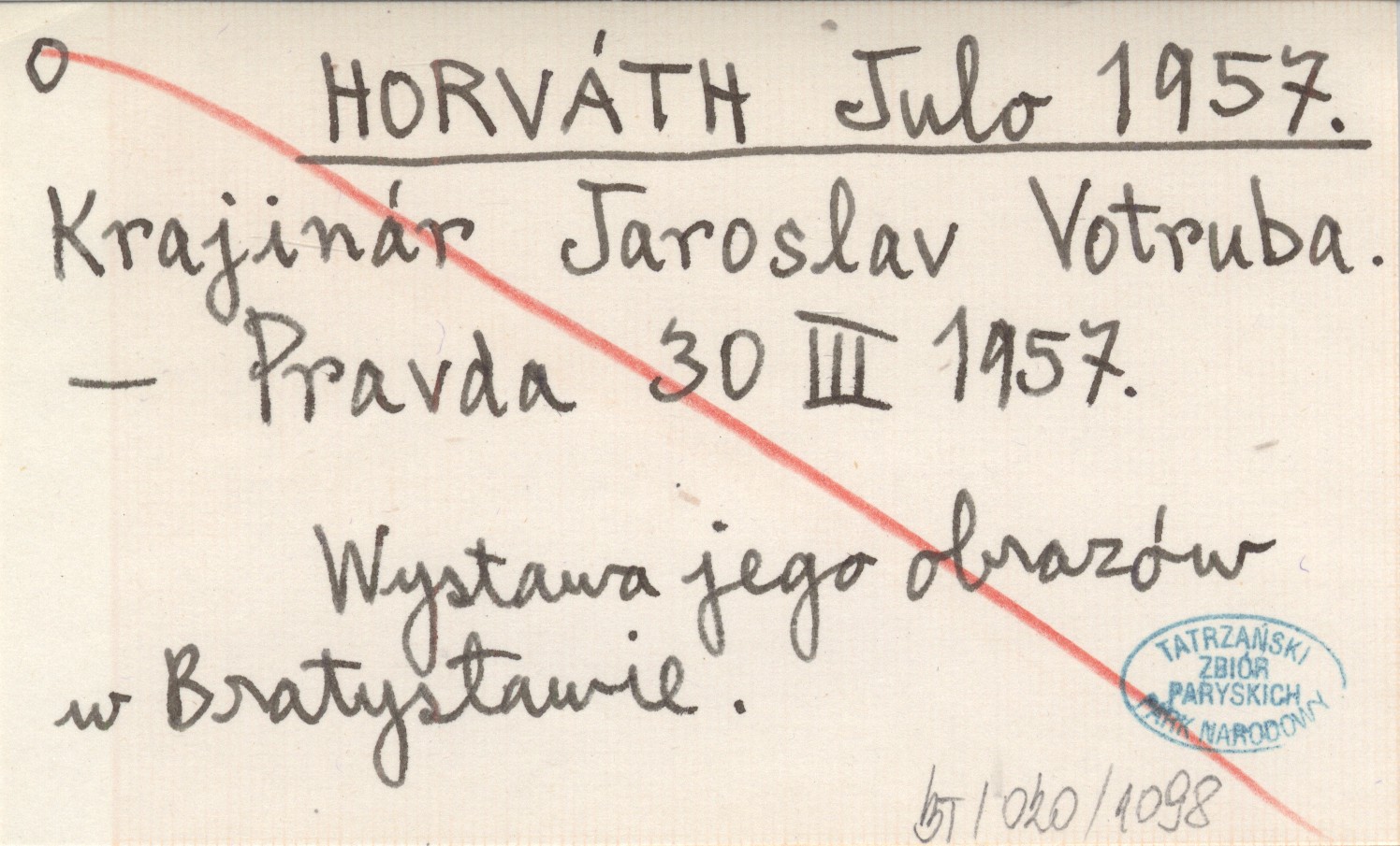 Pravda, 30 III 1957. Wystawa jego obrazów w Bratysławie.