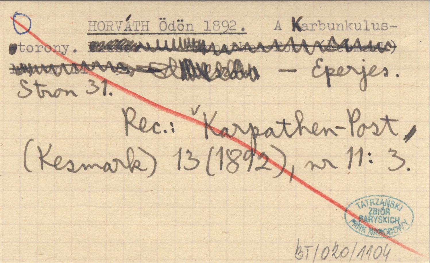 Eperjes , 31 s. REC: Karpathen-Post (Kesmark) 13 (1892), nr 11: 3.