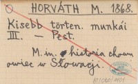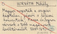 HORVÁTH Michály Magyar regesták a szepesi káptalan, jászói s leleszi konventek, Kassa és Sopron városok s több magánosok levéltáraiól. 1228-1643.