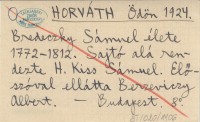HORVÁTH Ödön 1924 Bredeczky Sámuel élete 1772-1812. Sájtó alá rendezte H. Kiss Sámuel. Előszóval ellátta Berzeviczy Albert.