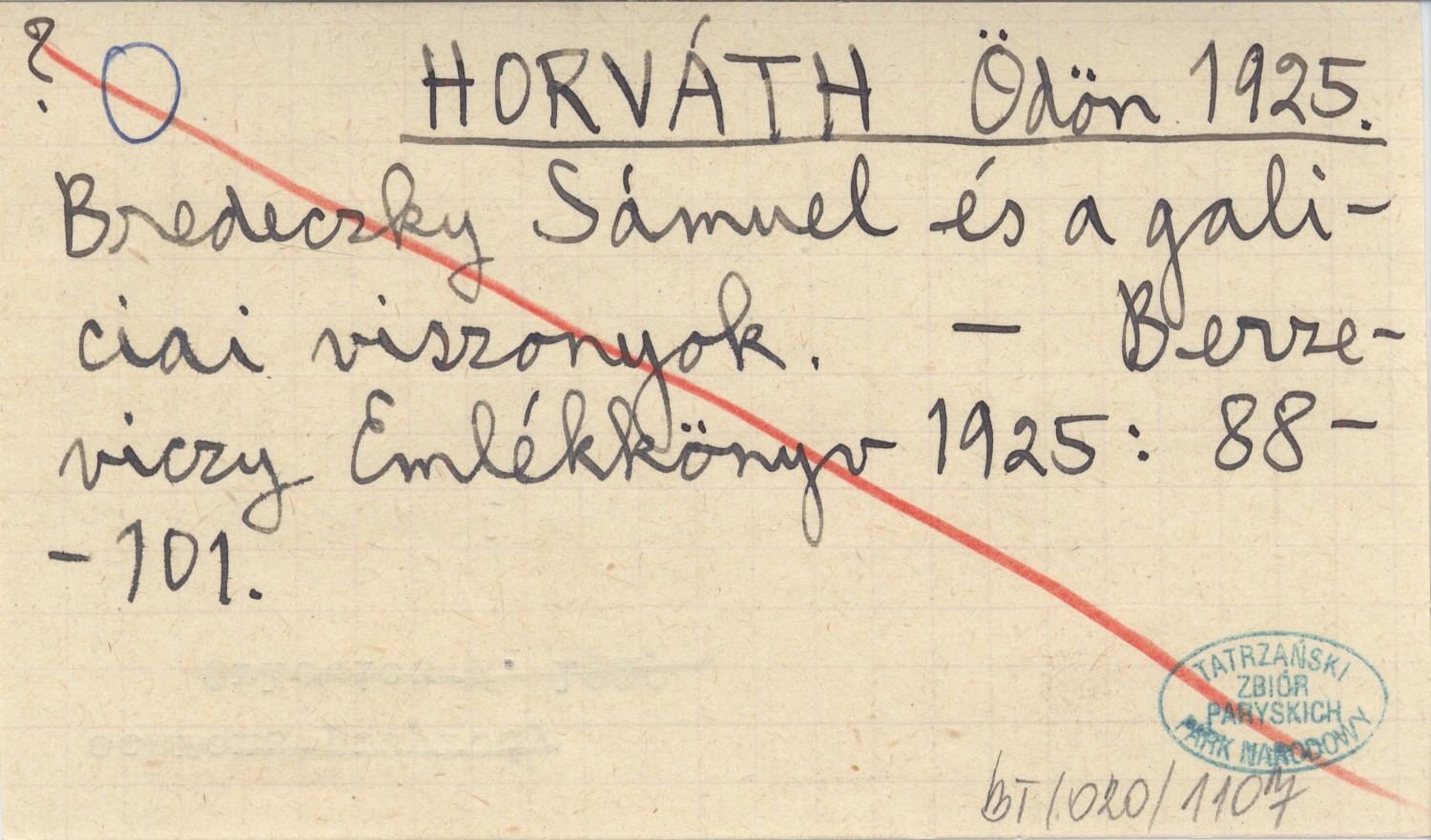 HORVÁTH Ödön 1925 Bredeczky Sámuel és a galiciai viszonyok.