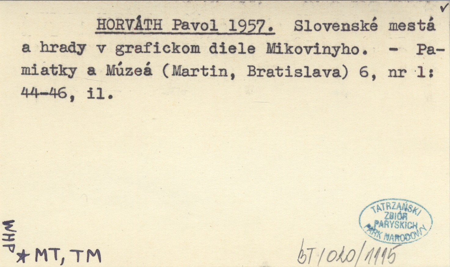 HORVÁTH Pavol 1957 Slovenské mestá a hrady v grafickom diele Mikovinyho.