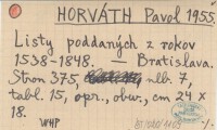 HORVÁTH Pavol 1955 Listy poddaných z rokov 1538-1848.
