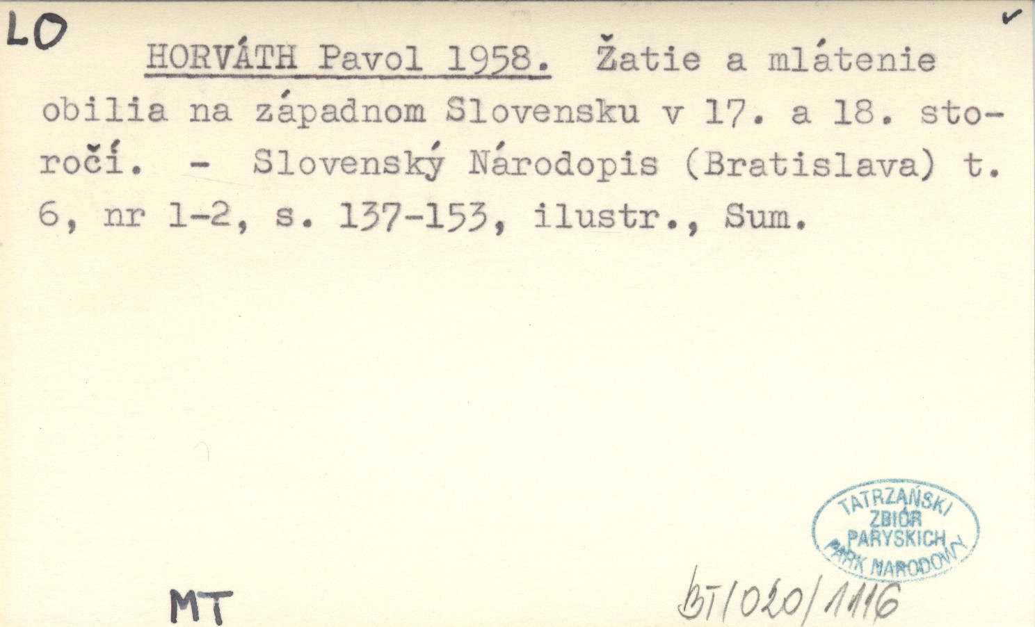 HORVÁTH Pavol 1958 Žatie a mlátenie obilia na západnom Slovensku v 17. a 18. storočí.