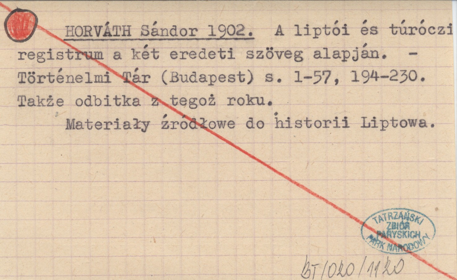 Történelmi Tár (Budapest) , S. 1-57, 194-230. Materia³y ¼ród³owe do historii Liptowa. Tak¿e odbitka z tego¿ roku.