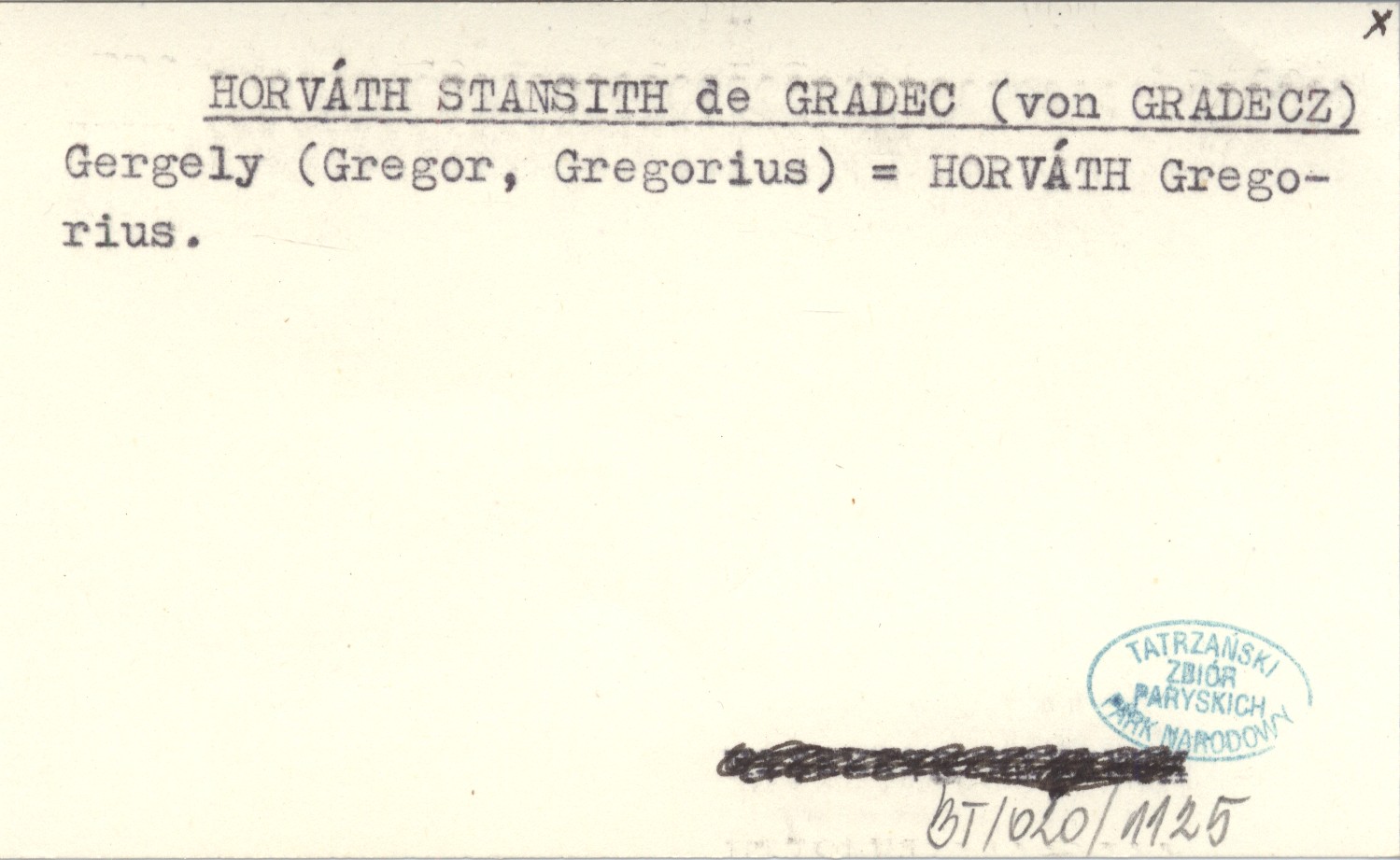 HORVÁTH STANSITH de GRADEC (von GRADECZ) Gergely (Gregor, Gregorius) HORVÁTH Gregorius