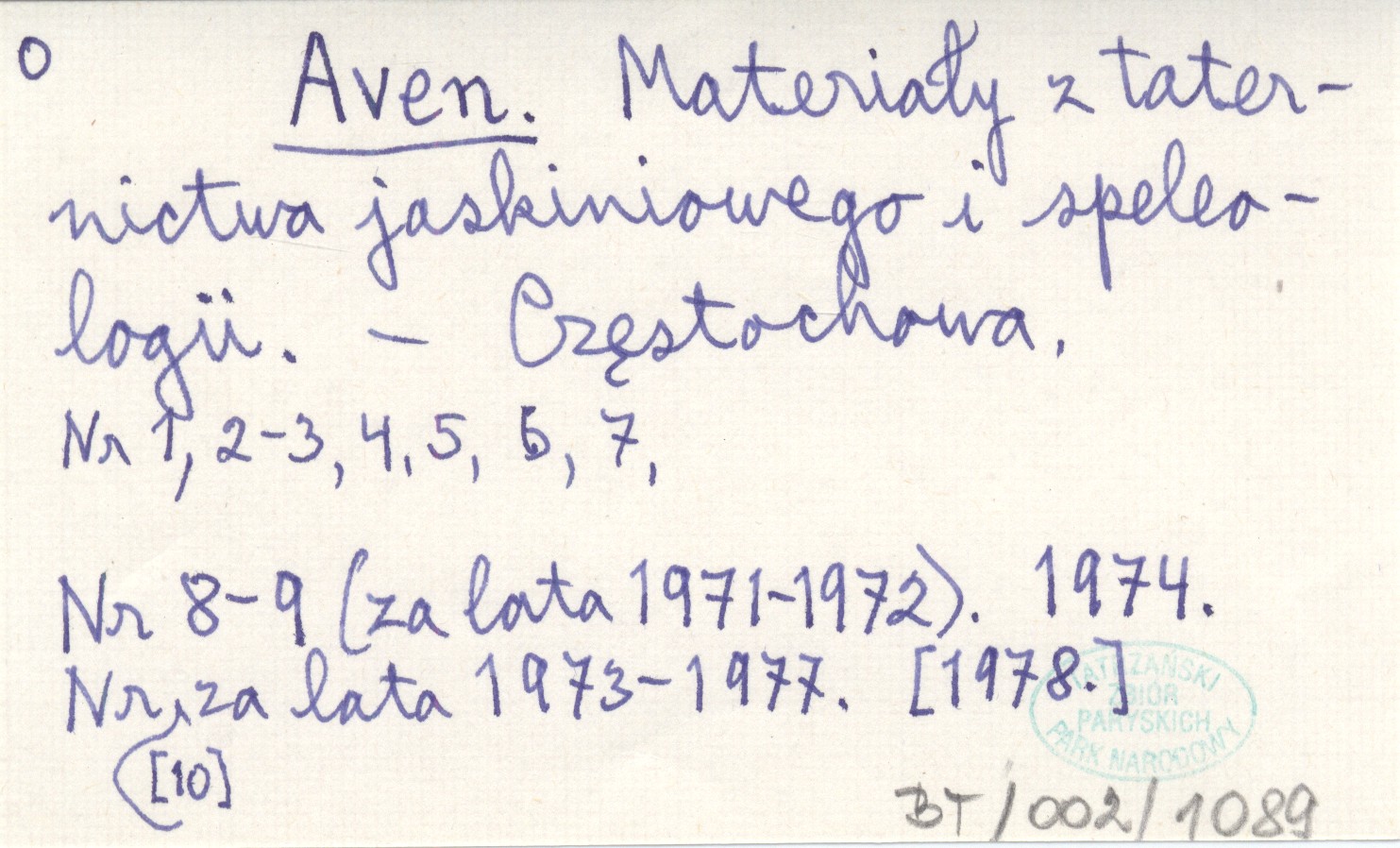 Częstochowa , Nr 1, 2-3, 4, 5, 6, 7, 8-9 (za lata 1971-1972). 1974. Nr 10 za lata 1973-1977. [1978].