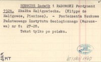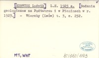 L. H. [HORWITZ Ludwik] 1925 a [Badania geologiczne na Podtatrzu i w Pieninach w r. 1923].