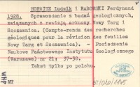 HORWITZ Ludwik RABOWSKI, Ferdynand. ; 1928 Sprawozdanie z badań geologicznych, związanych z rewizją arkuszy Nowy Targ i Szczawnica. (Compte-rendu des recherches géologiques pour la révision des feuilles Nowy Targ et Szczawnica).