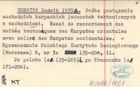 HORWITZ Ludwik 1935 a Próba powiązania wschodnich karpackich jednostek tektonicznych z zachodniemi. Essai de raccordement des unités tectoniques des Karpates orientales.