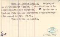 HORWITZ Ludwik 1935 d Przyczynki do stratygrafji Karpat. (Contributions á la stratigraphie des Karpates).