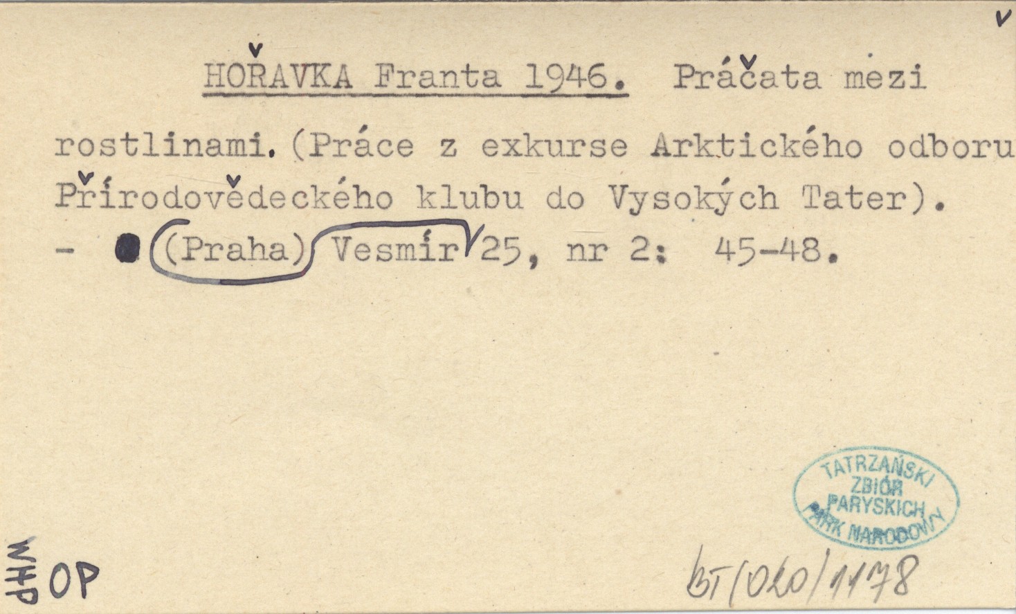 HOŘAVKA Franta 1946 Práčata mezi rostlinami. (Práce z exkurse Arktického odboru Přírodovědeckého klubu do Vysokých Tater).