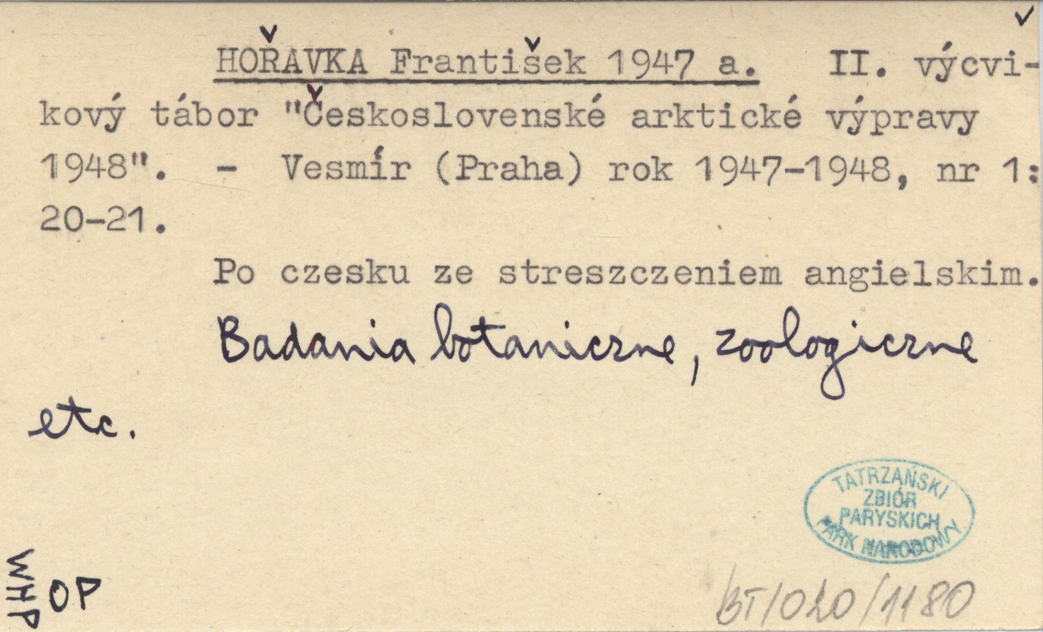 Vesmír (Praha) , R. 1947-1948, nr 1: 20-21. Badania botaniczne, zoologiczne etc. Po czesku ze streszczeniem angielskim.