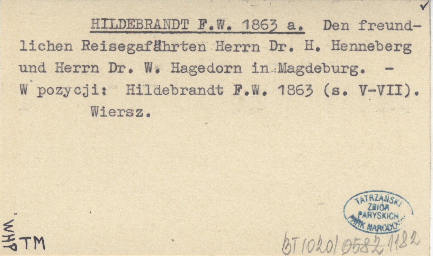 Hildebrandt F. W. 1863 (S. V-VII). , Wiersz.
