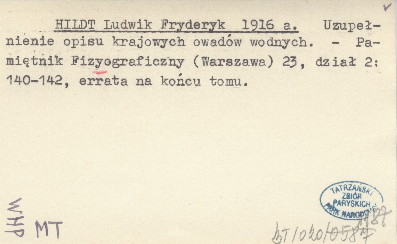 HILDT Ludwik Fryderyk 1916 a Uzupełnienie opisu krajowych owadów wodnych.