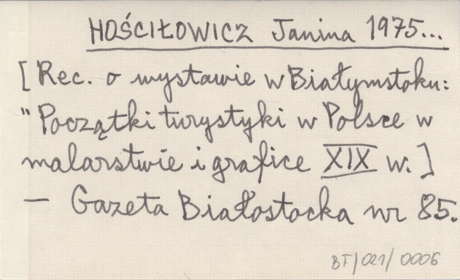 HOŚCIŁOWICZ Janina 1975... [Rec. o wystawie w Białymstoku: "Początki turystyki w Polsce w malarstwie i grafice XIX w.].