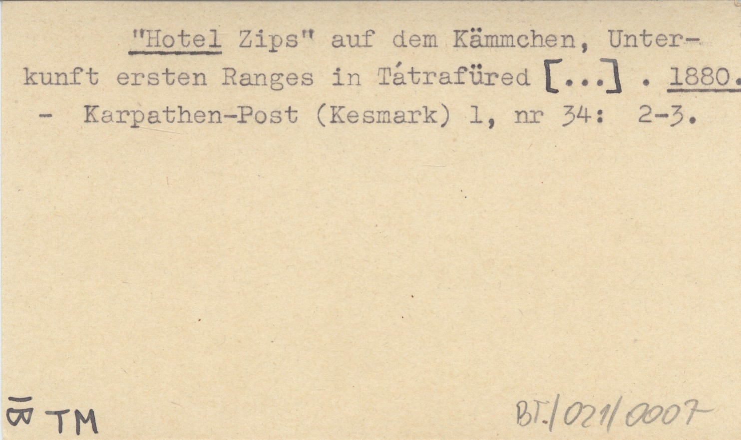 "Hotel Zips" auf dem Kämmchen, Unterkunft ersten Ranges in Tátrafüred [...]. 1880