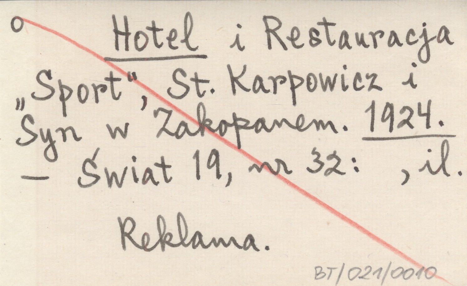 Hotel i Restauracja "Sport", St. Karpowicz i Syn w Zakopanem. 1924