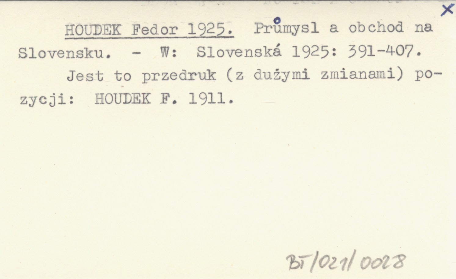 Slovenská 1925: 391-407. , Jest to przedruk (z dużymi zmianami) pozycji: HOUDEK F. 1911.