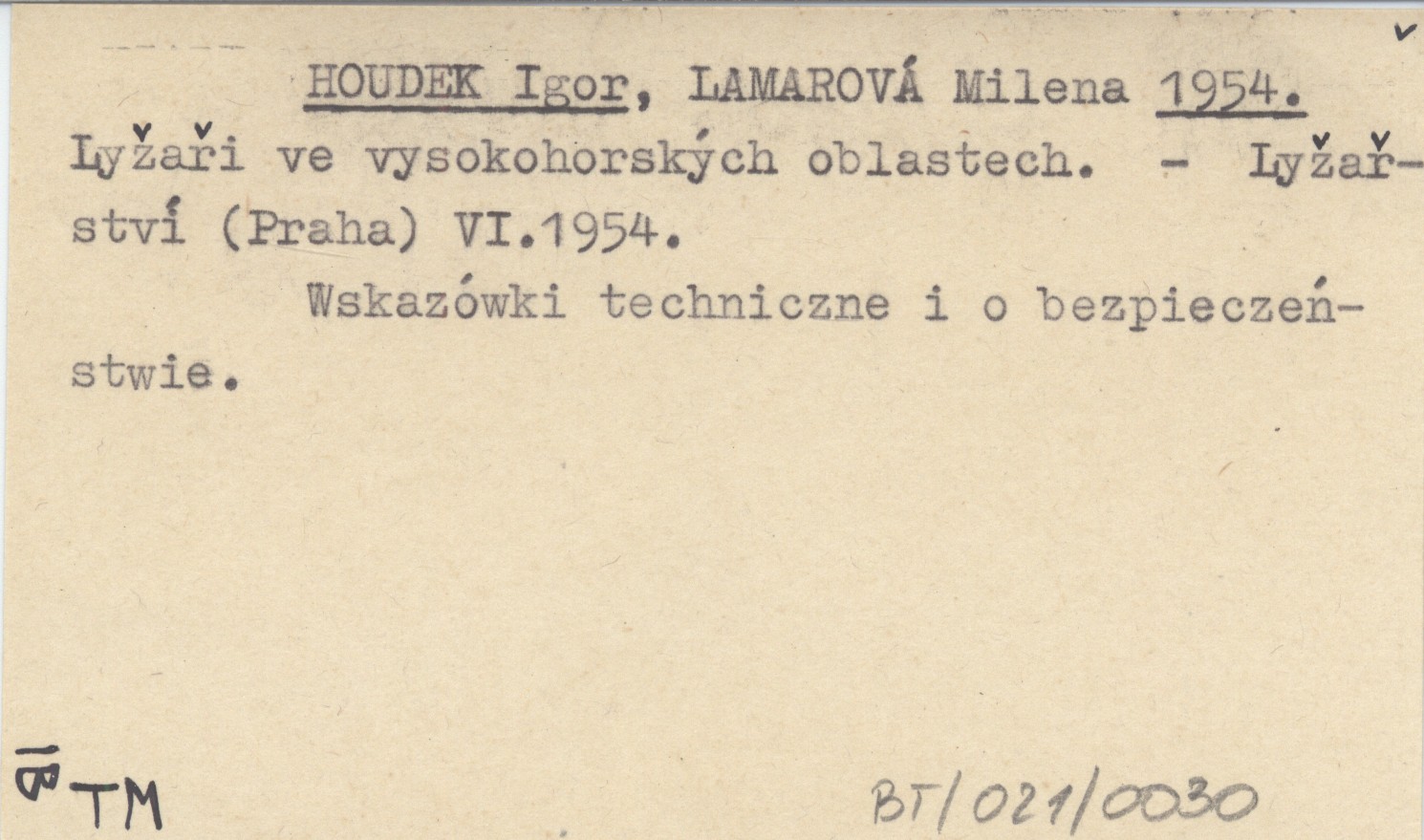 HOUDEK Igor LAMAROVÁ, Milena. ; 1954 Lyžaři ve vysokohorských oblastech.