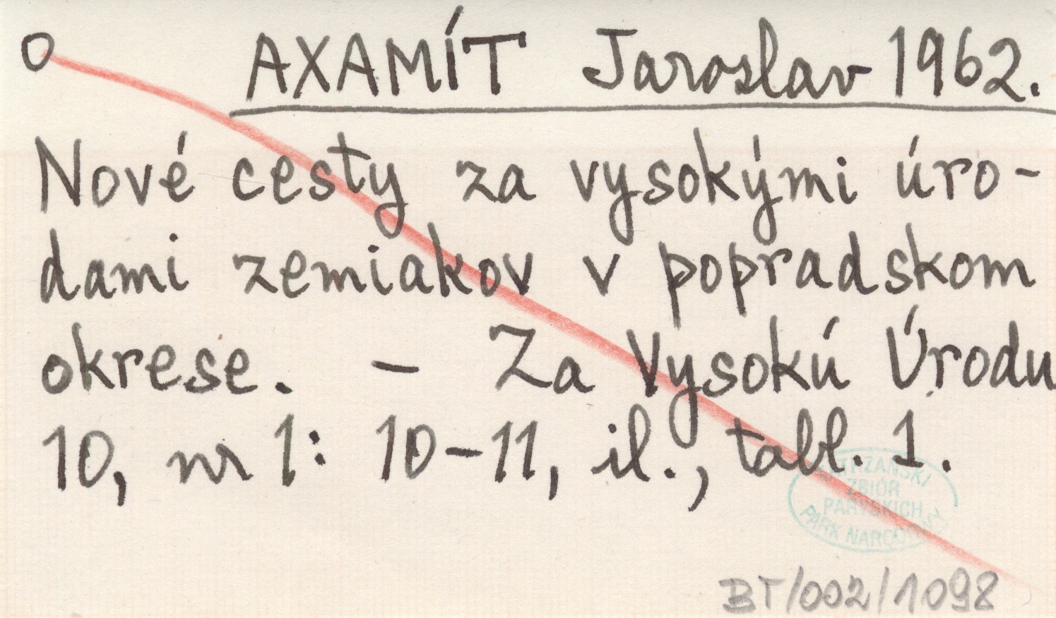 AXAMÍT Jaroslav 1962 Nové cesty za vysokými úrodami zemiakov v popradskom okrese.