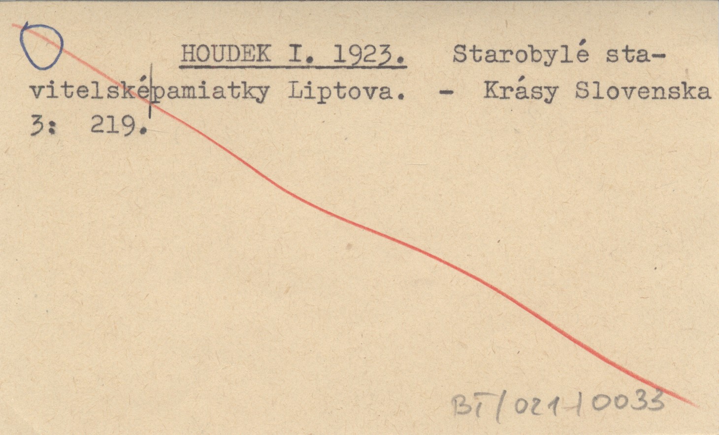 HOUDEK I. 1923 Starobylé stavitelské pamiatky Liptova.