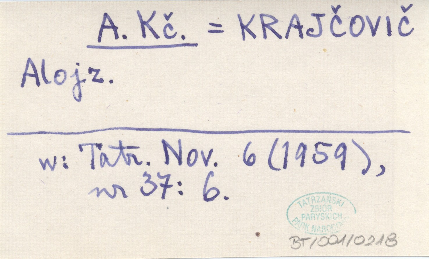 A. Kč. KRAJČOVIČ Alojz Tatranské Noviny 6 (1959), nr 37: 6.