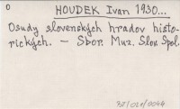 HOUDEK Ivan 1930... Osudy slovenských hradov historických.