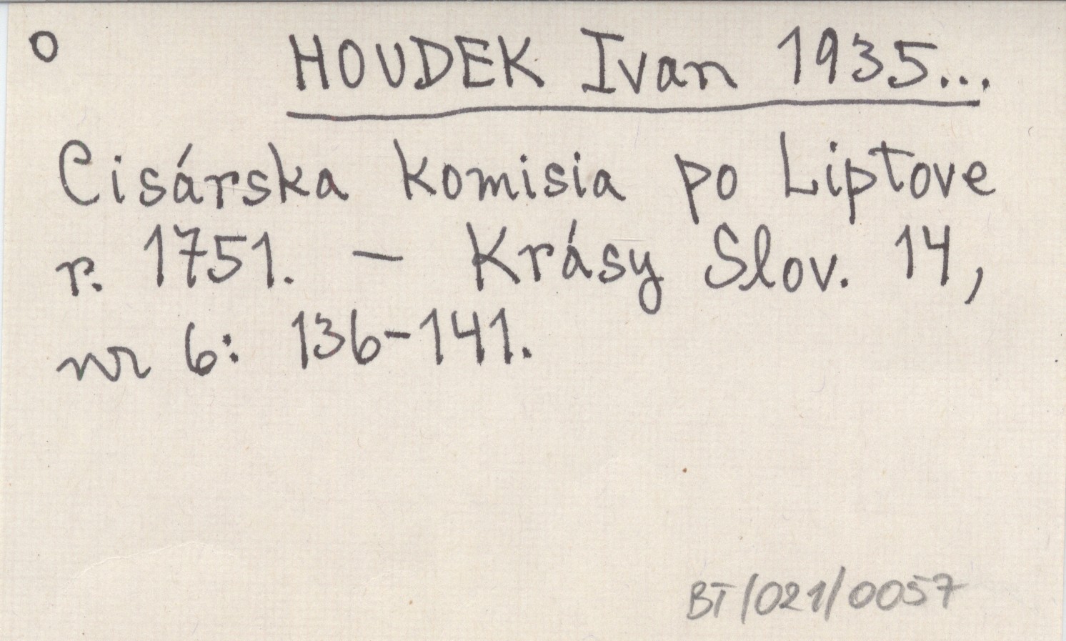 HOUDEK Ivan 1935... Cisárska komisia po Liptove r. 1751.