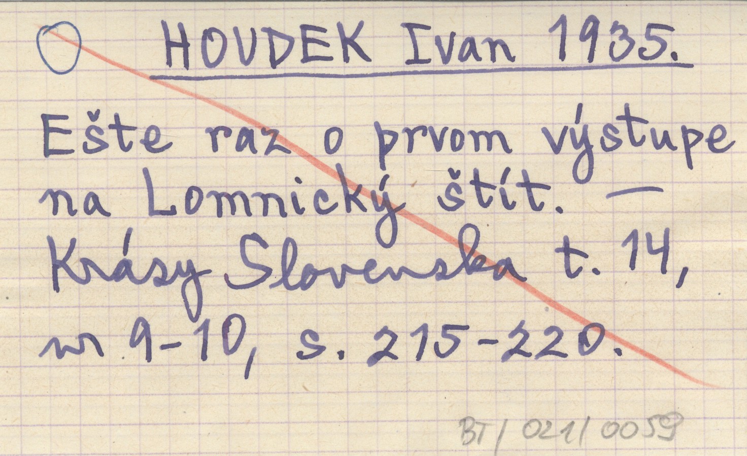 HOUDEK Ivan 1935 Ešte raz o prvom výstupe na Lomnický štít.