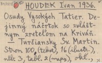 HOUDEK Ivan 1936 Osudy Vysokých Tatier. Dejinný náčrtok so zvláštnym zreteľom na Kriváň.