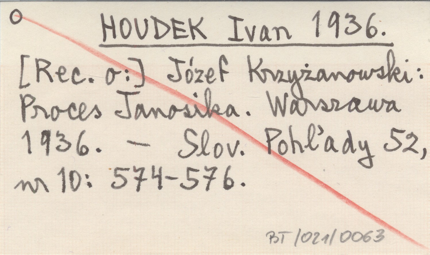 HOUDEK Ivan 1936 Józef Krzyżanowski: Proces Janosika. Warszawa 1936.