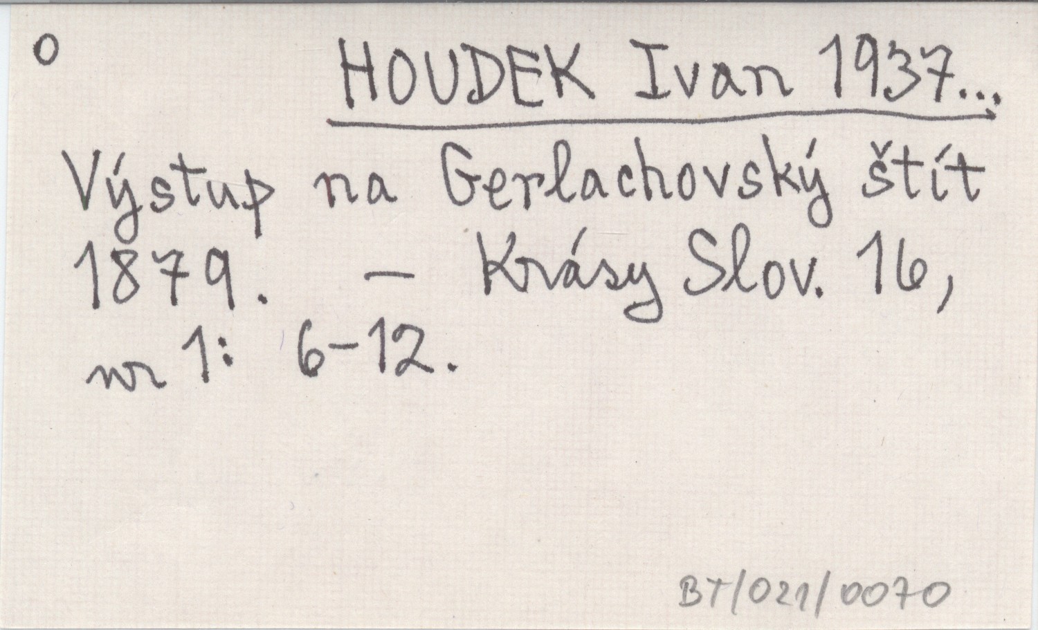 HOUDEK Ivan 1937... Výstup na Gerlachovský štít 1879.