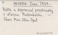 HOUDEK Ivan 1939... Pošta a dopravné prostriedky v starom Ružomberku.